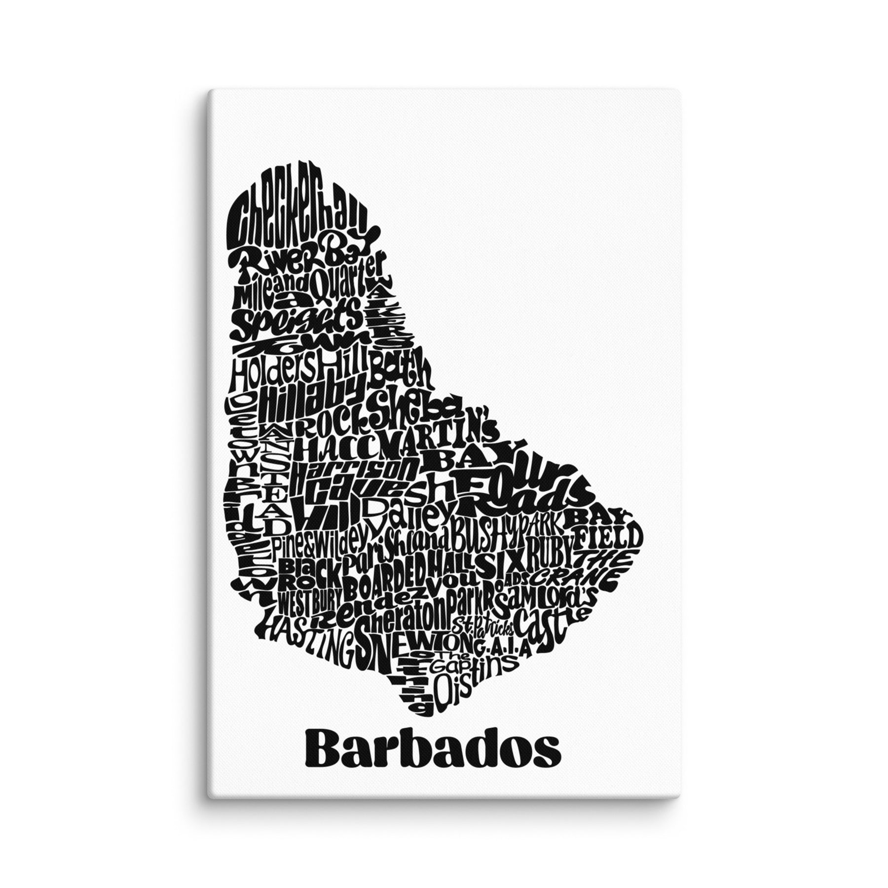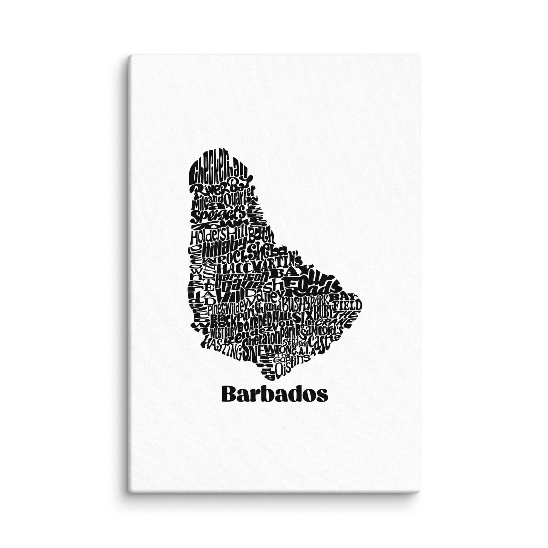 Represent where u came from! This canvas features a design created from the places, landmarks and locations that make Barbados the Gem of the Caribbean. Big up yuhself in this FlyLoVve original!