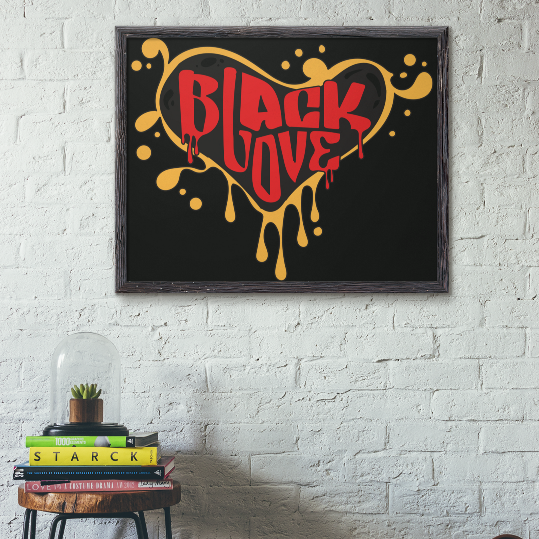 Transform your living space with our striking urban wall art featuring a bold black heart outlined in dripping gold, with the powerful words "Black Love" written in vibrant red at the center. This piece beautifully combines ethnic pride and modern artistry, making it a standout addition to your home decor. Perfect for adding a touch of elegance and cultural significance to any room, this wall art celebrates the beauty and strength of Black love. Ideal for those who appreciate contemporary design with a meaningful message, this artwork is a must-have for any stylish and culturally conscious home.