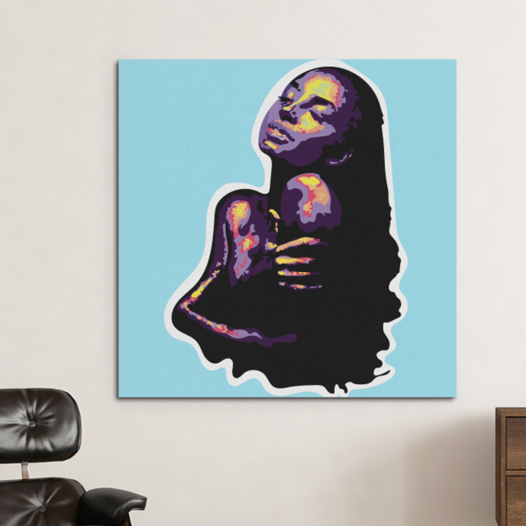 Step into sophistication with our Sade "By Your Side" Heat Map Wall Art, a stunning tribute to the legendary songstress and her iconic Love Deluxe album. This premium-quality artwork showcases a mesmerizing heat map-style rendition of Sade's timeless portrait from the album cover, brought to life in vibrant, multi-colored hues. The bold white outline adds a sticker-like effect, making the piece both modern and nostalgic.