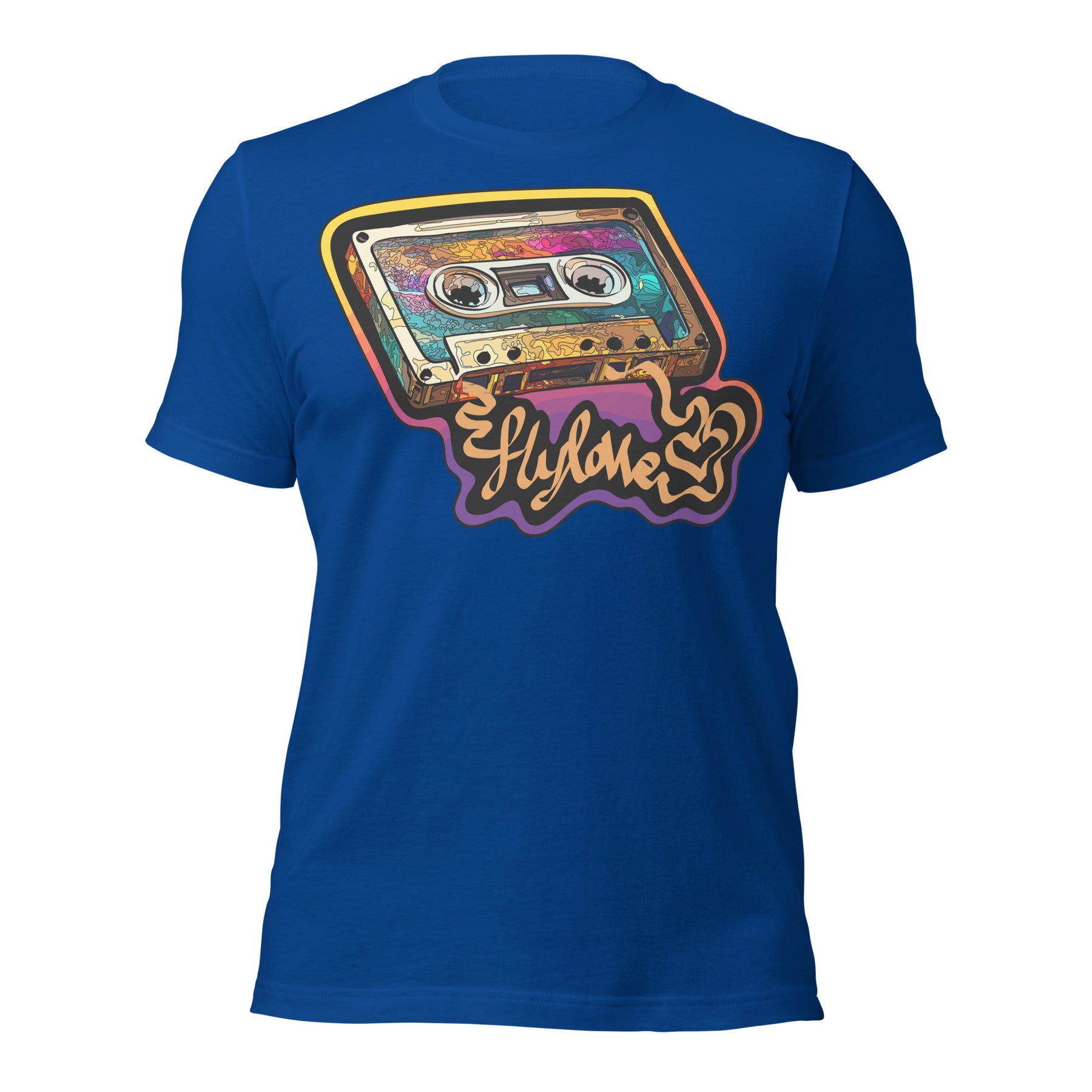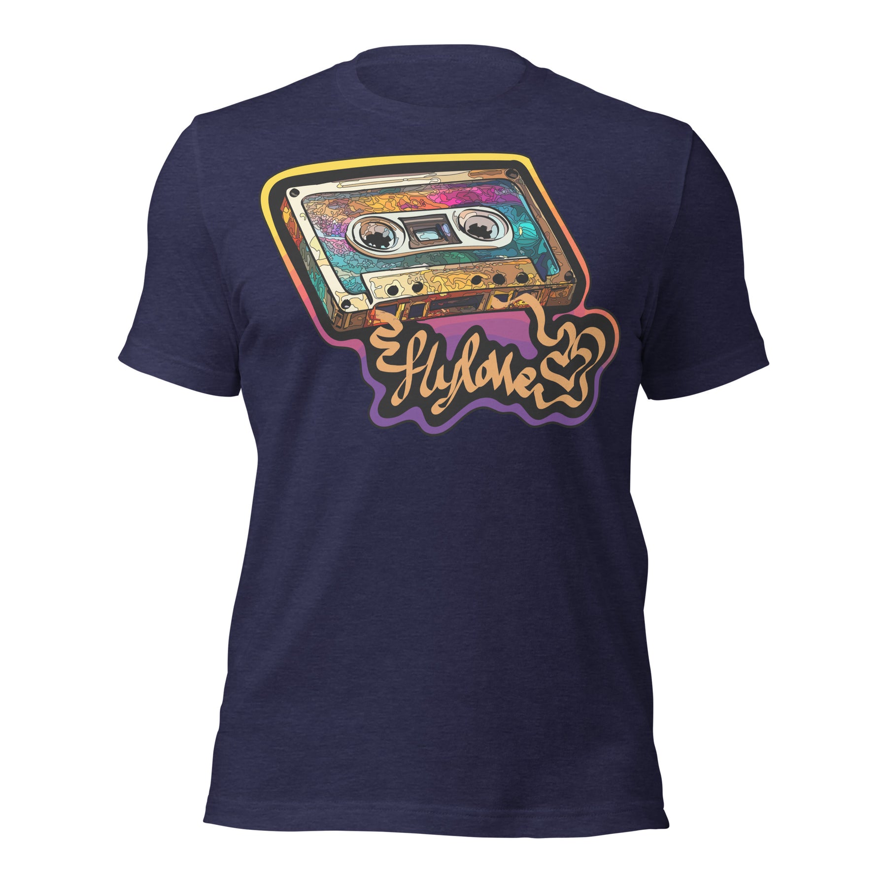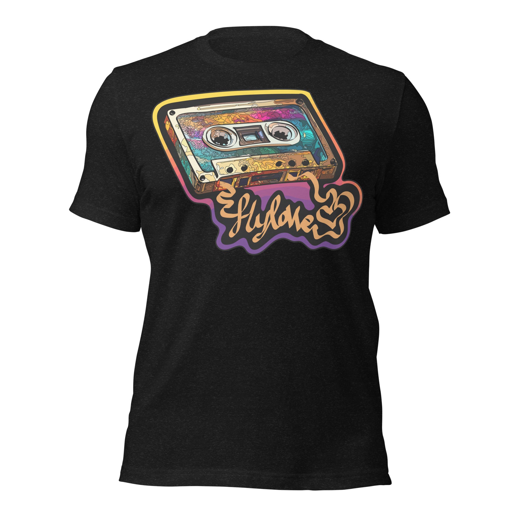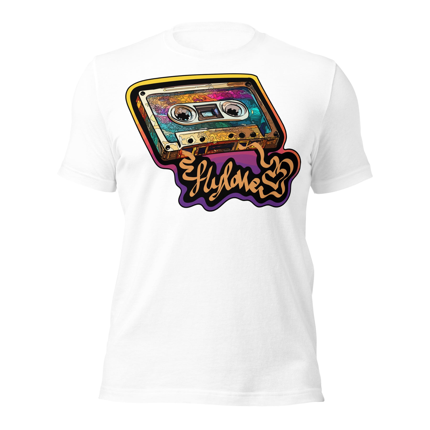 Back in the day, the mixed tape was King! FlyLoVve celebrates the mixed tape with this colorful design, symbolizing the music, the memories, and the magic that came from a simple cassette tape!