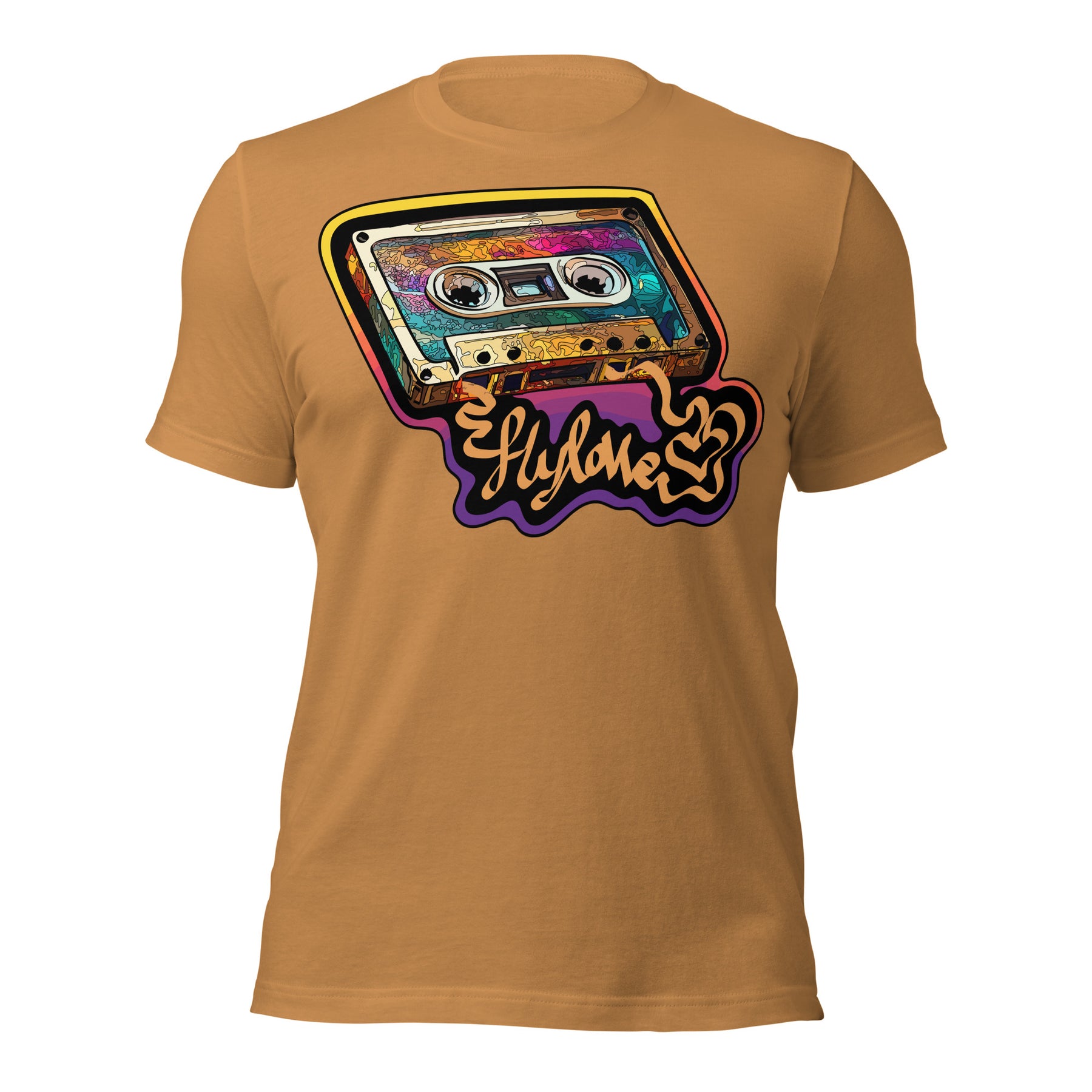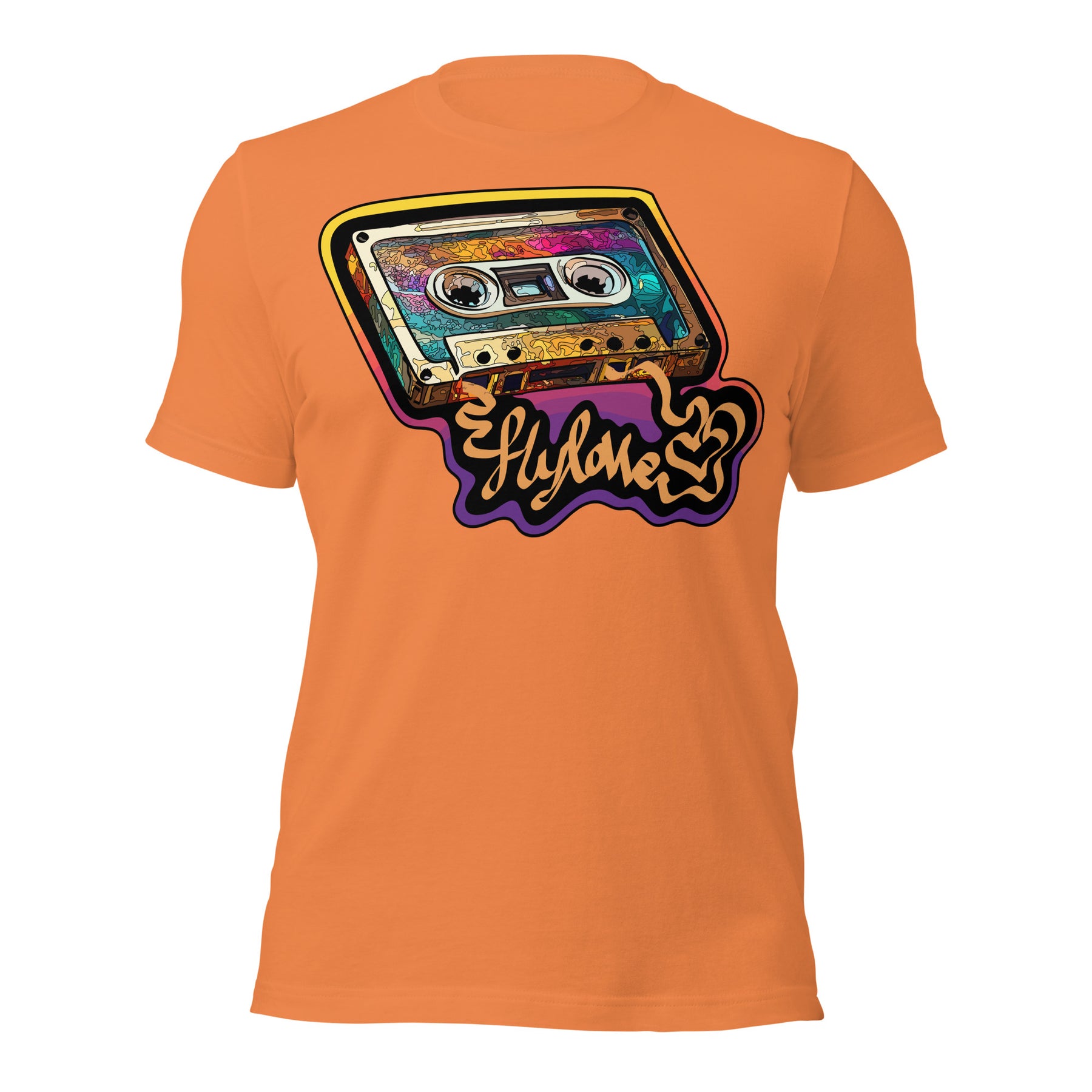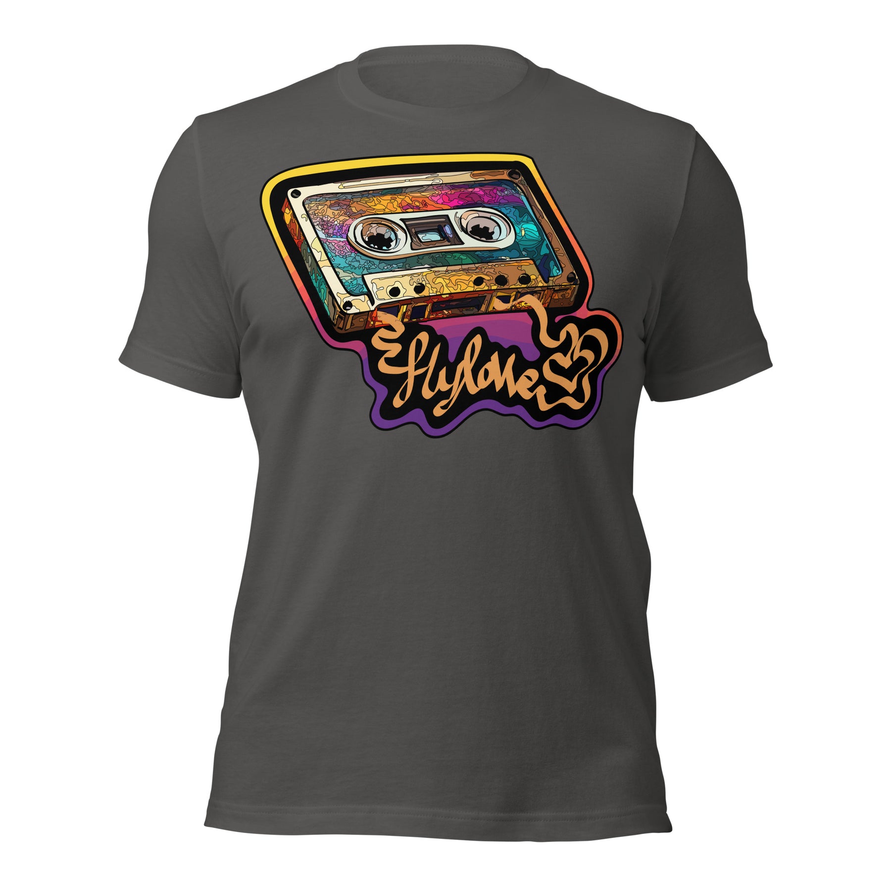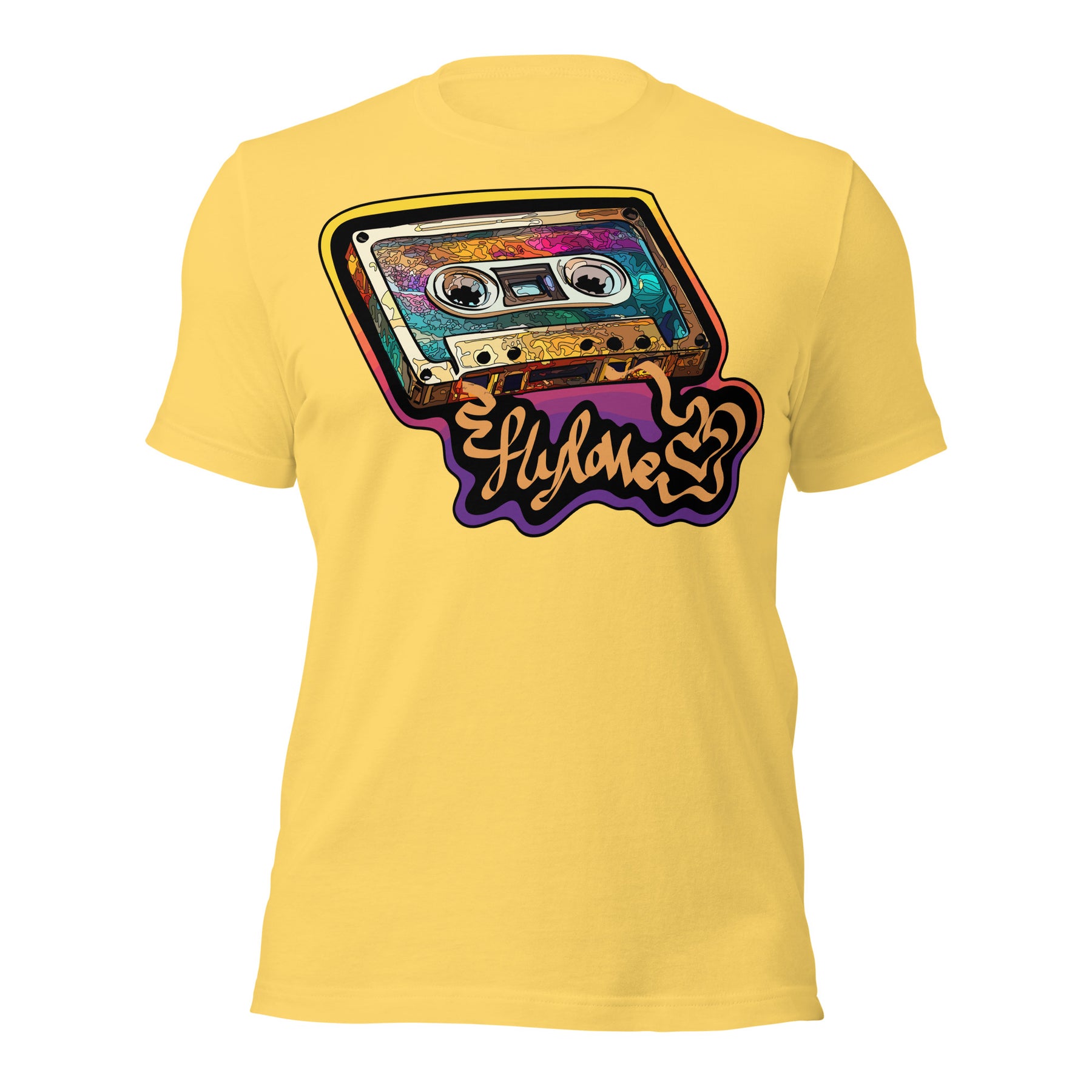 Back in the day, the mixed tape was King! FlyLoVve celebrates the mixed tape with this colorful design, symbolizing the music, the memories, and the magic that came from a simple cassette tape!