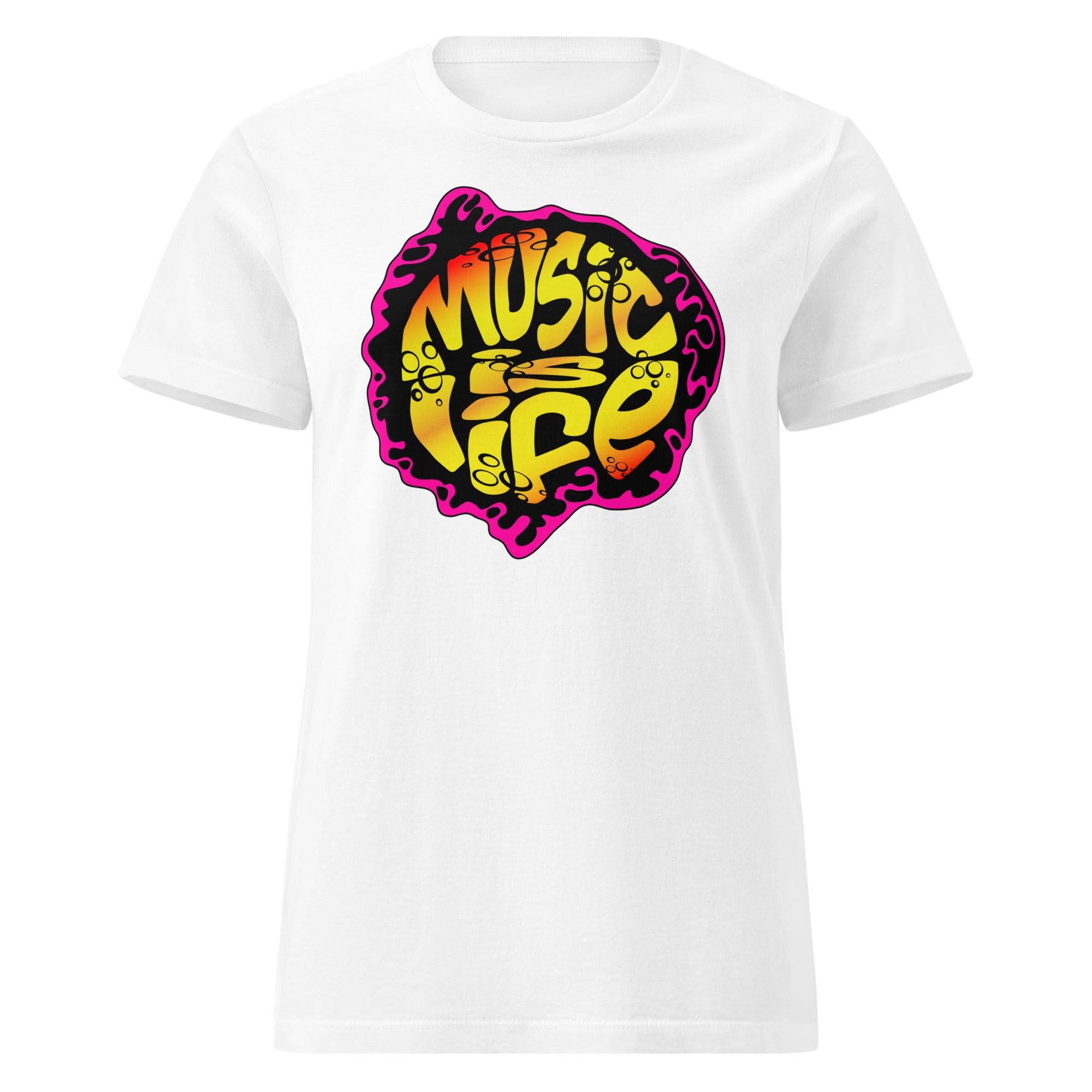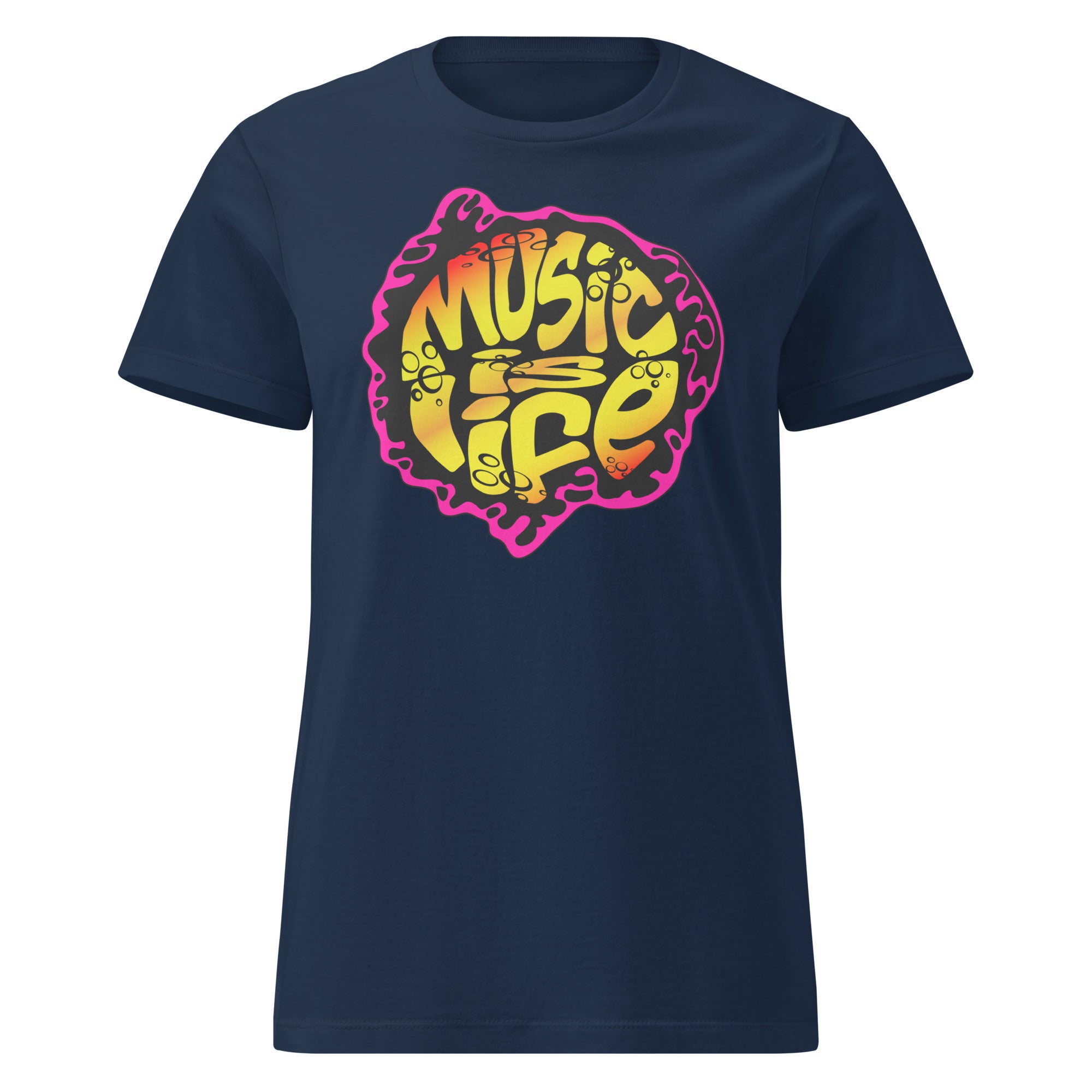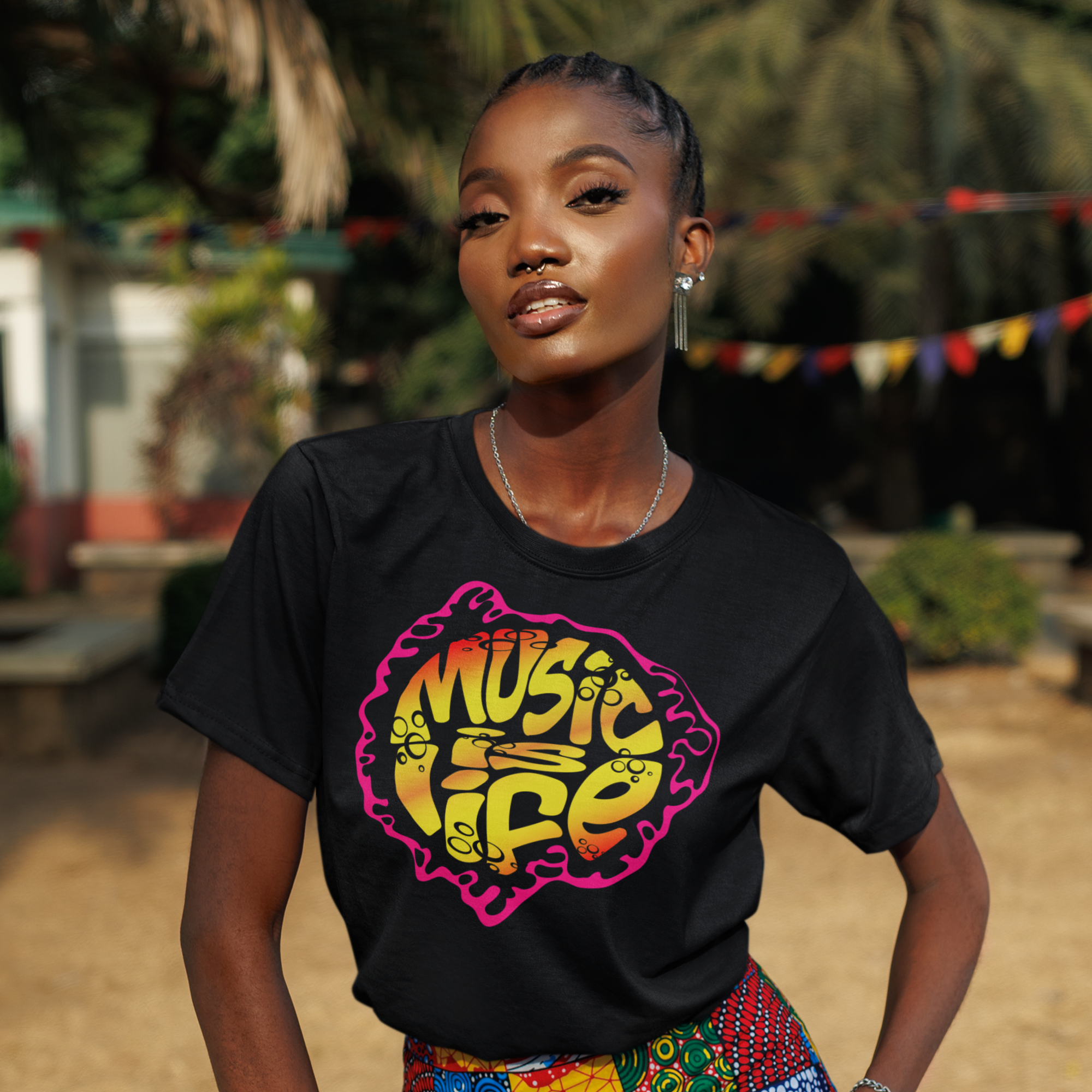 The Music Is Life design is a bold celebration of sound, soul, and self-expression. Featuring a vibrant, psychedelic-inspired colorway with fluid lettering, this piece channels the energy of late-night grooves, classic vinyl, and the moments when music speaks louder than words.