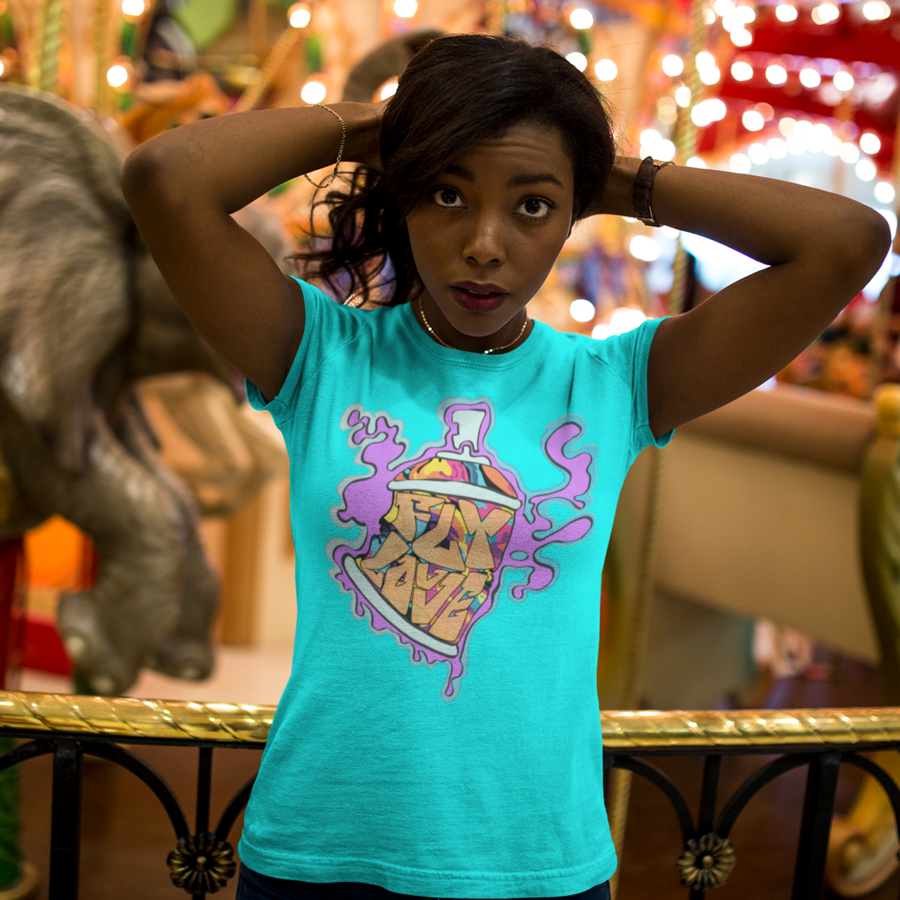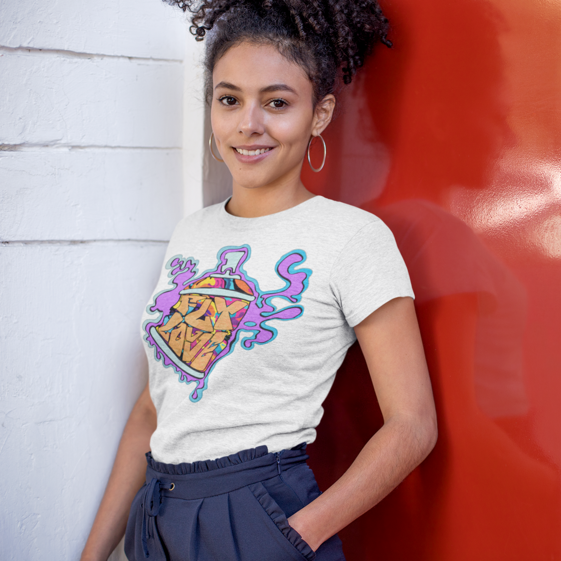 Unleash your creative spirit with the FlyLoVve Spray Paint Can Tee! This vibrant shirt features an animated, multi-colored spray paint can, proudly displaying the FlyLoVve logo on its front. Encased in a bold purple paint spill, this design bursts with energy and artistic flair, perfect for those who thrive on self-expression and urban vibes. Made from premium-quality cotton, this tee offers both style and comfort, making it a must-have for streetwear enthusiasts and art lovers alike.