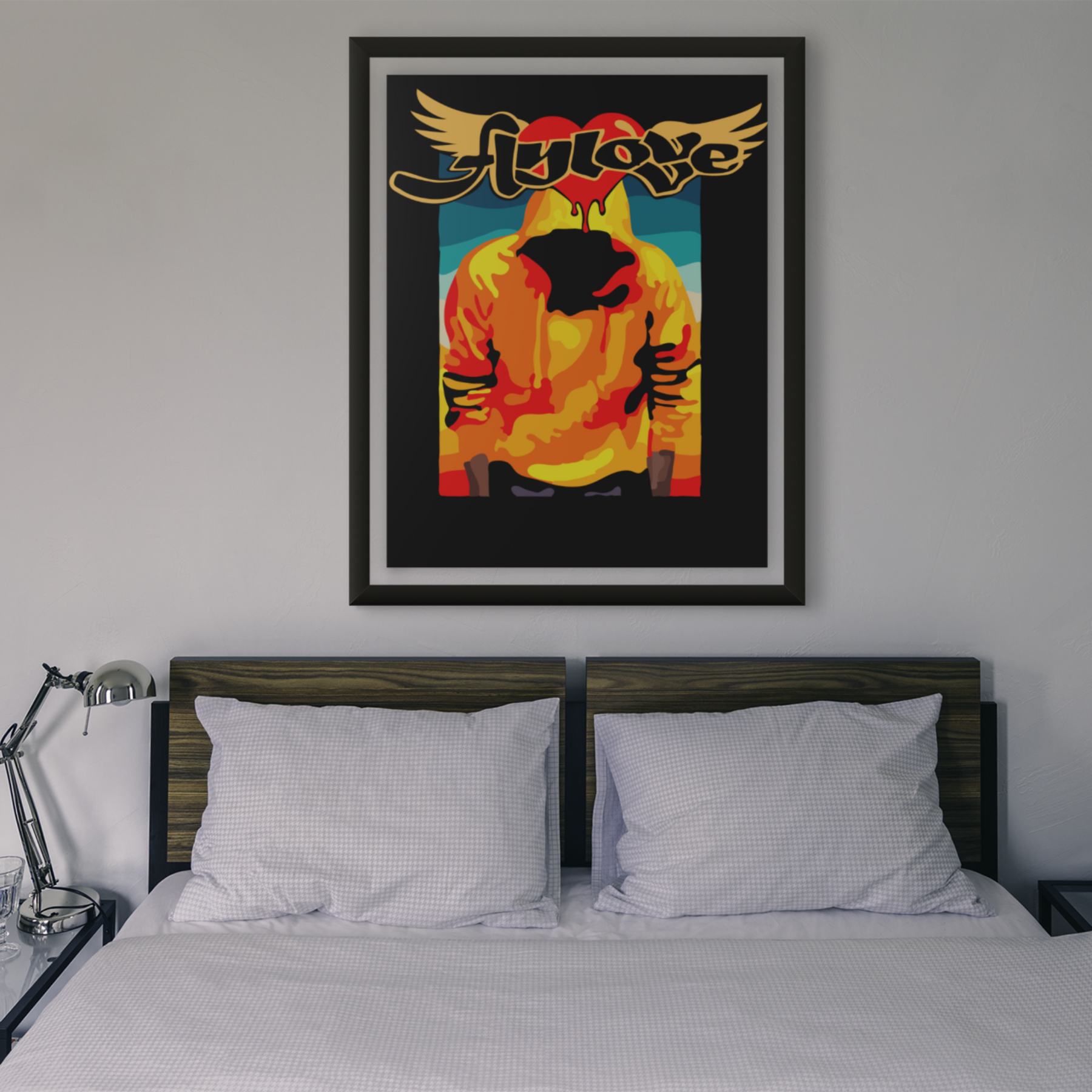 Bring urban strength and mystery to your space with the FlyLoVve “In da Hood” Wall Art—a bold statement piece that captures the spirit of resilience, freedom, and street culture. The artwork features a man in a yellow hoodie with orange accents, his face hidden, symbolizing the silent grind and unshakable confidence of those who move with purpose. Above him, the word FlyLoVve floats over a red heart with wings, creating a tattoo-inspired aesthetic that represents love, ambition, and the will to rise above.