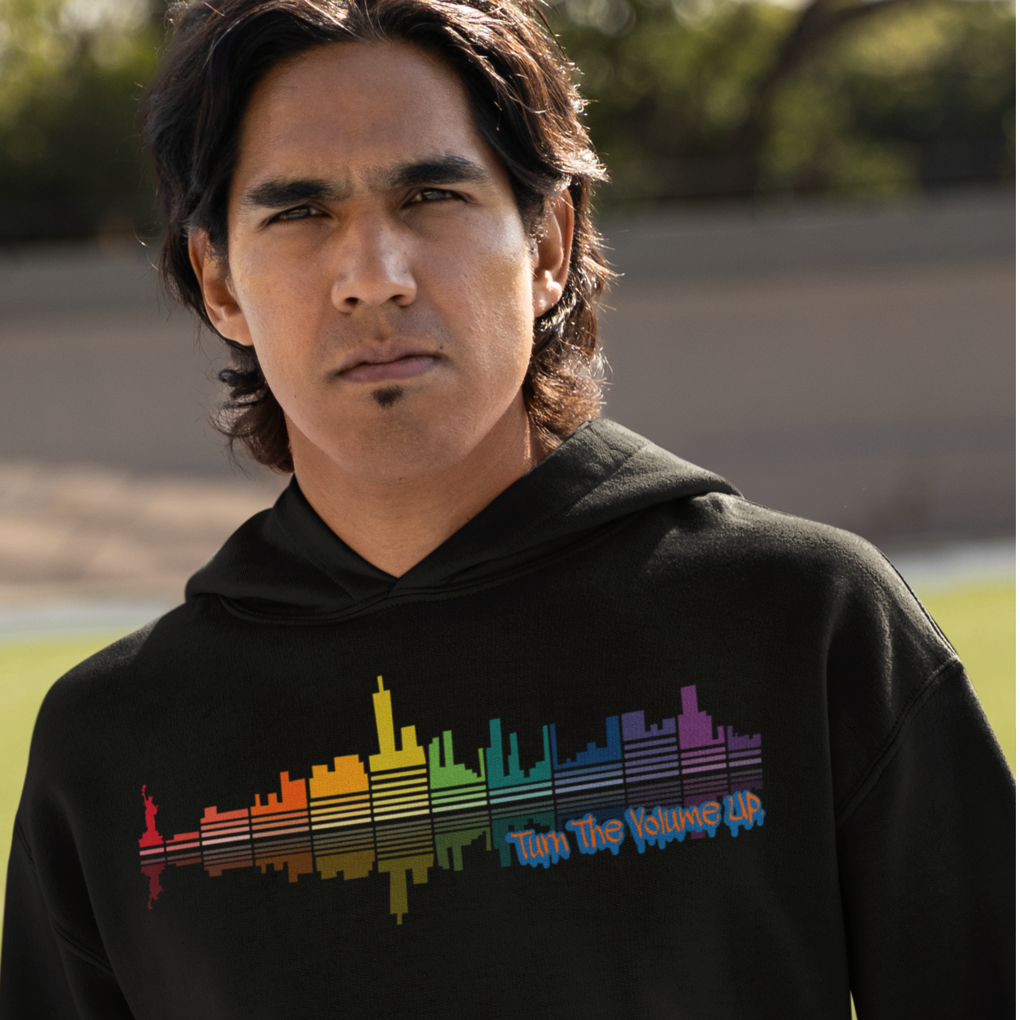 Wrap yourself in warm rebellion and color. With the full-spread NYC skyline-soundwave design and the contextual shout-out by Zohran Mamdani to Donald Trump — “turn the volume up” — this hoodie doesn’t just wear like clothing, it speaks.