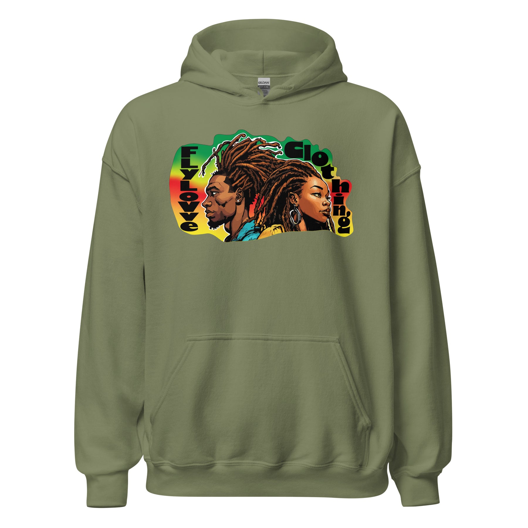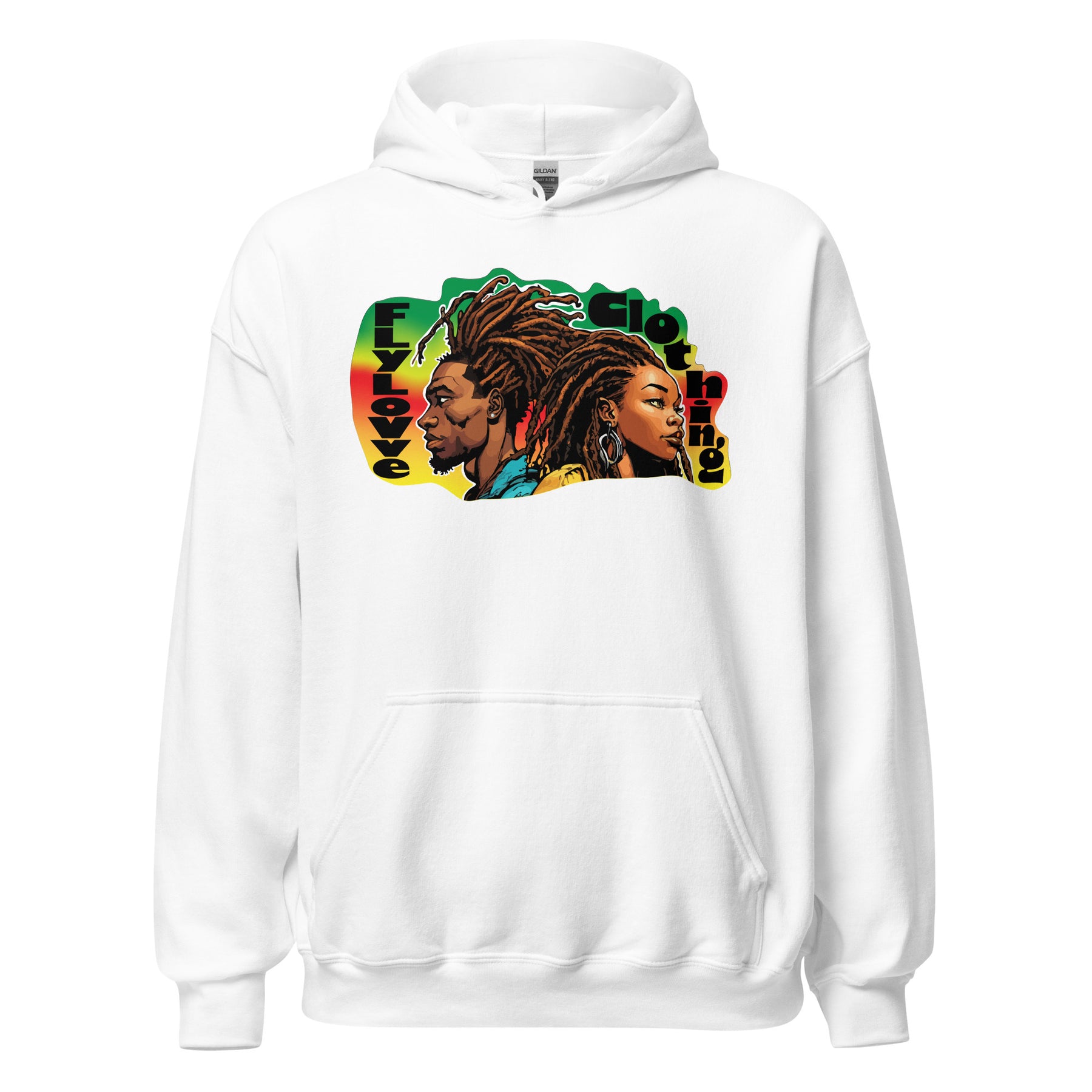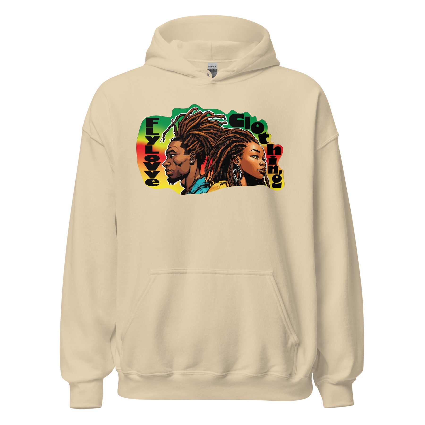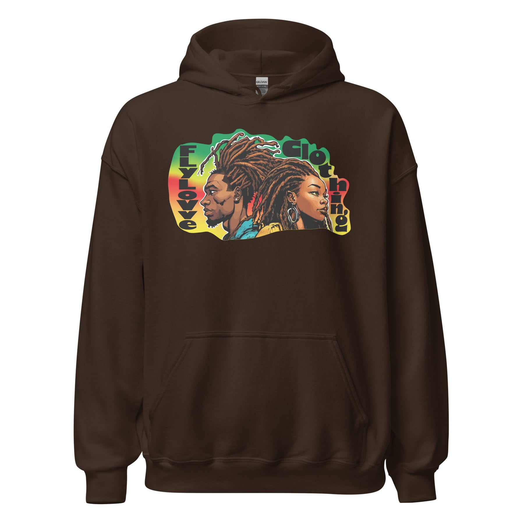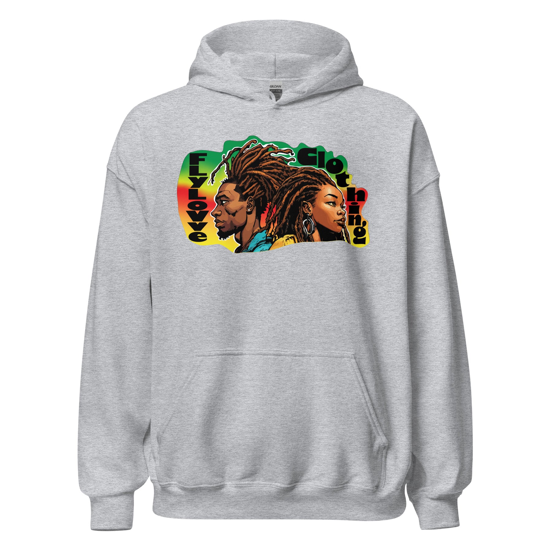 Wrap yourself in culture with the FlyLoVve Vintage Hoodie. This bold design places two powerful figures back-to-back, their locs flowing in rhythm with the colors of the diaspora. Cozy, durable, and unapologetically proud — this hoodie embodies strength, unity, and love.