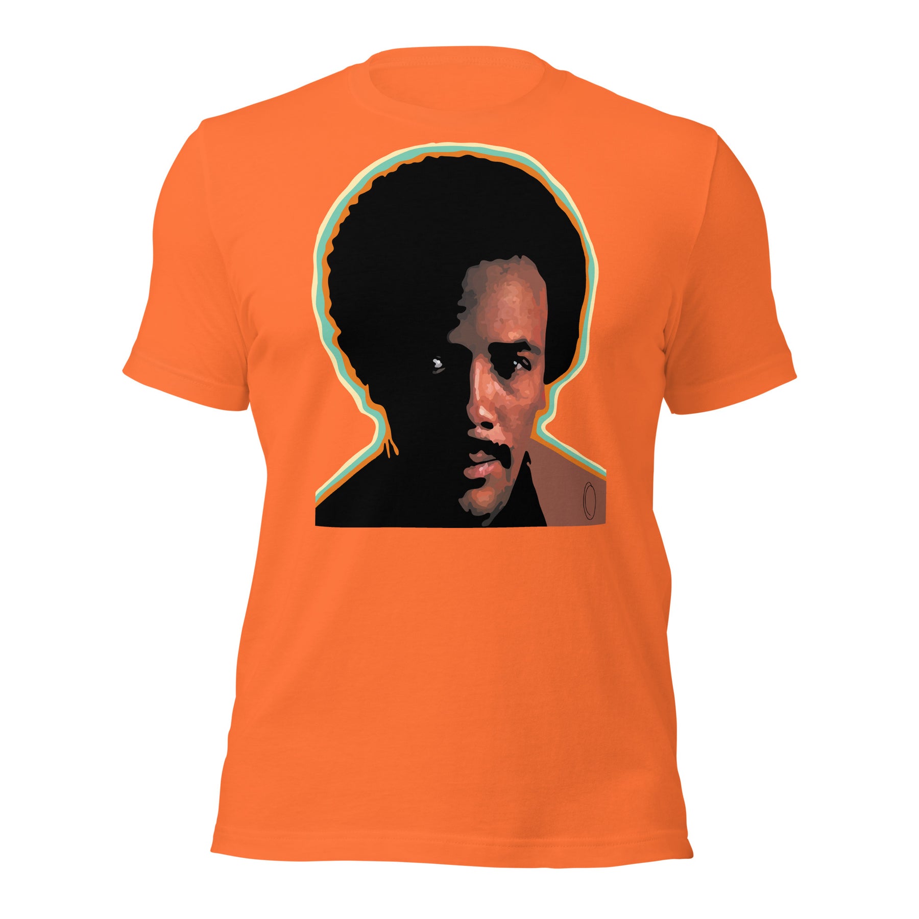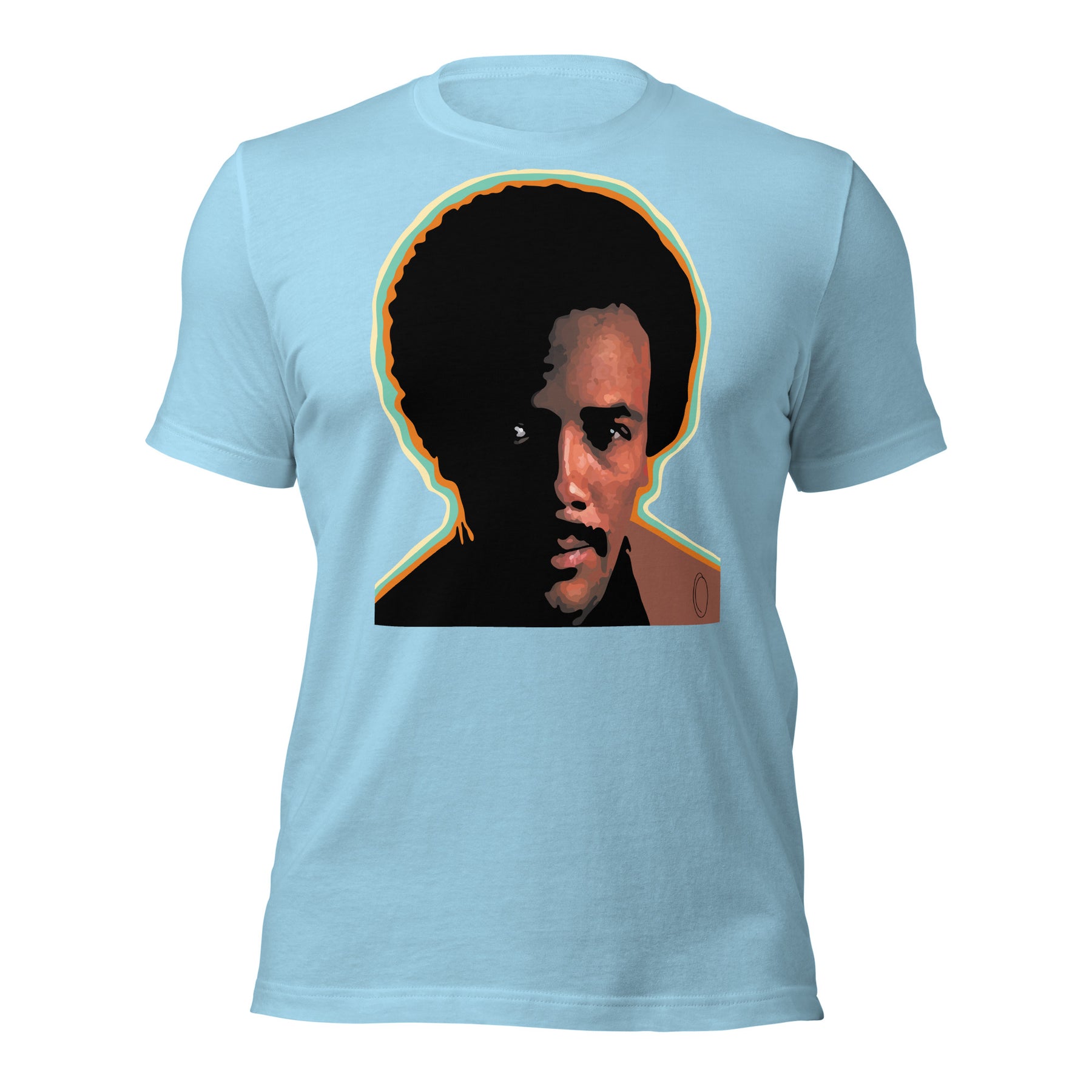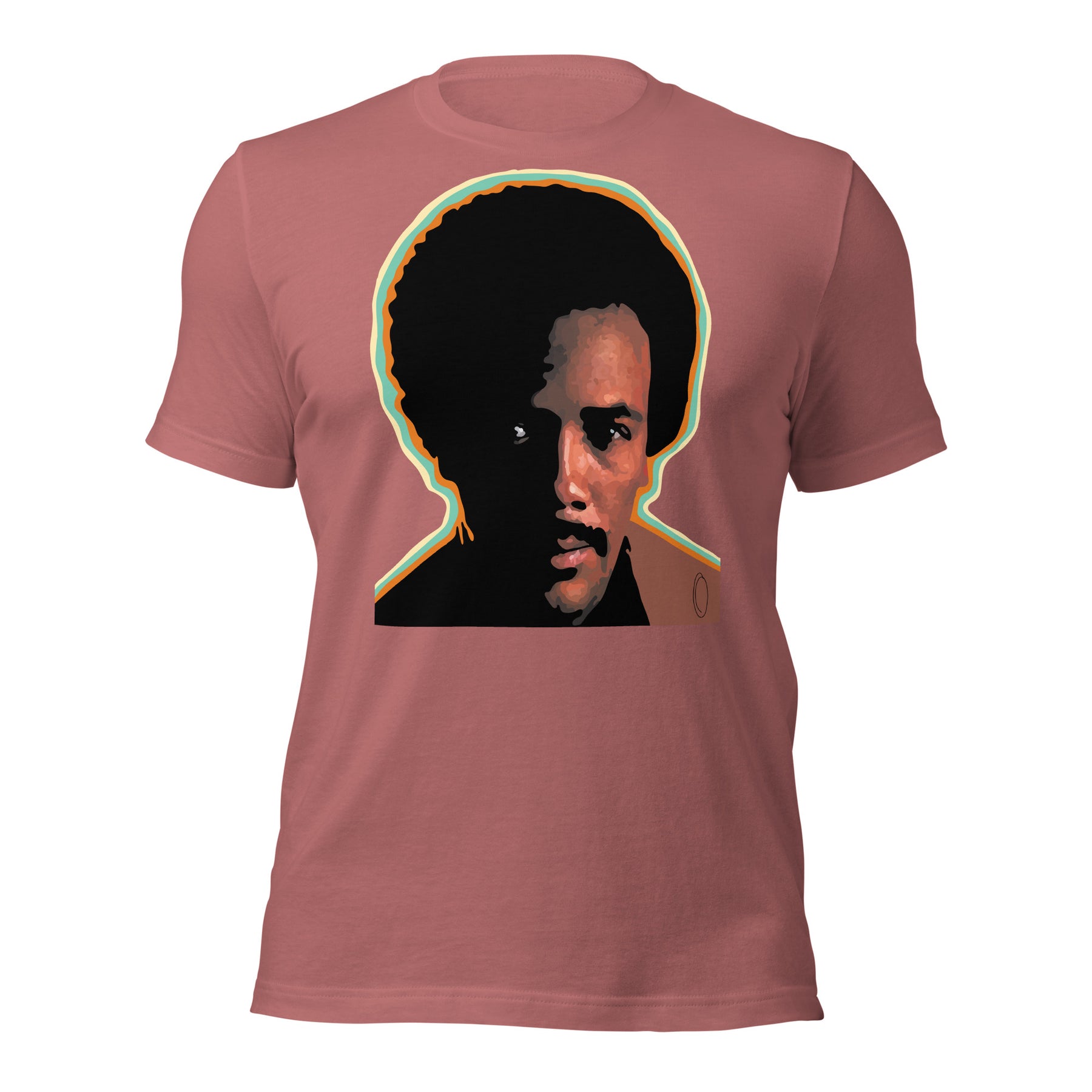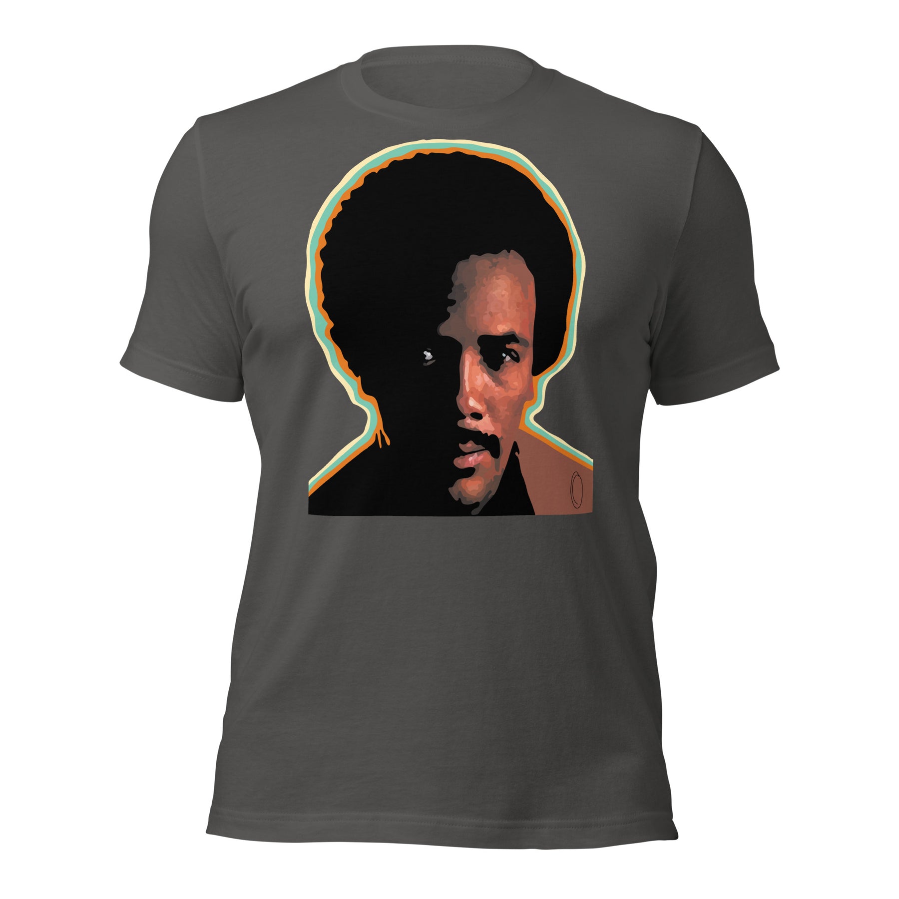 Celebrate a musical genius with this exclusive Quincy Jones t-shirt. Featuring a young Quincy, afro and all, with his iconic 'Q' signature in the corner, this design captures his charm and legacy. Outlined in bold, 70s-inspired colors, this portrait exudes vintage vibes and timeless style, perfect for fans of music history and retro fashion. Made with premium, soft fabric, this FlyLoVve t-shirt is a comfortable and stylish way to keep Quincy’s spirit close, wherever you go.