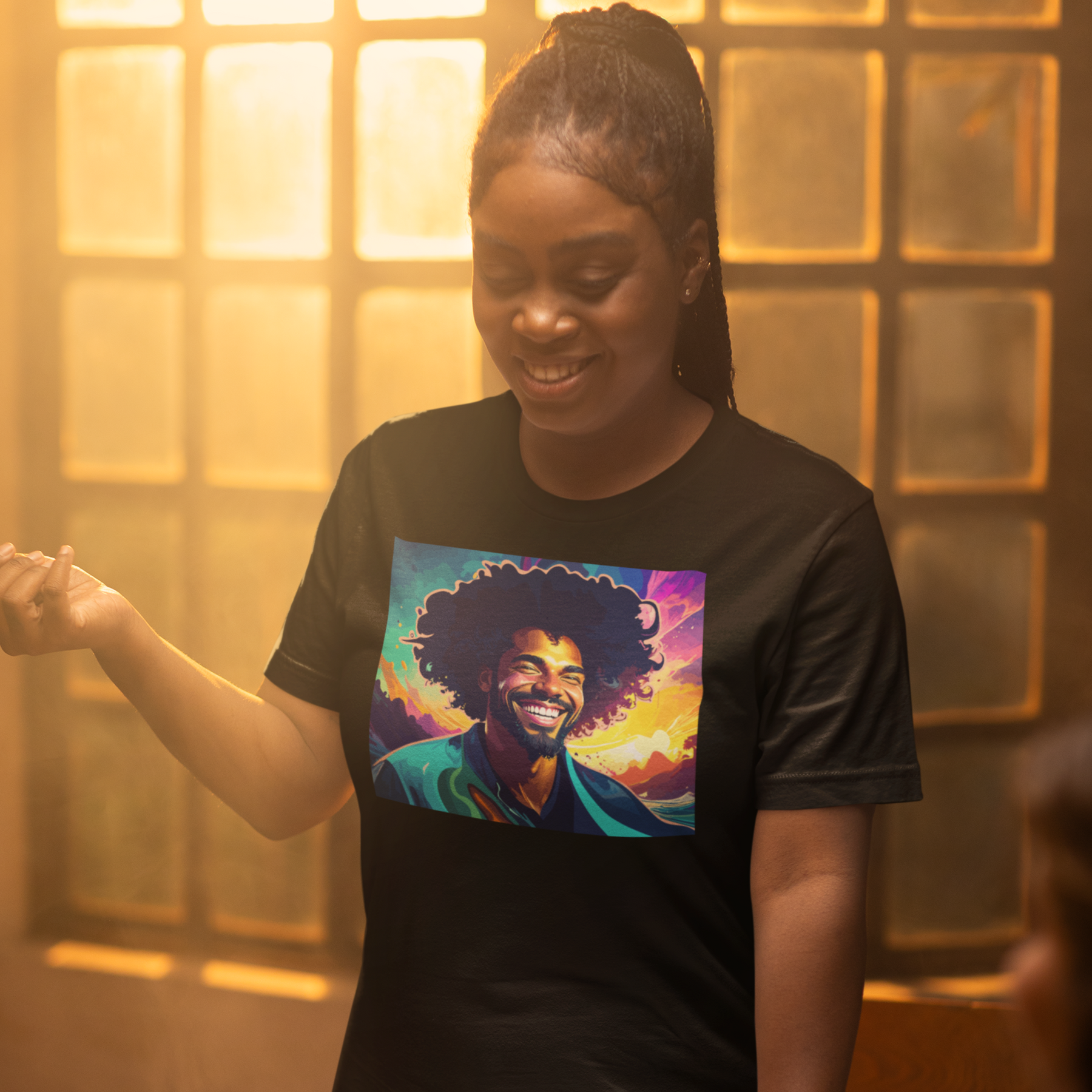 Radiate joy. The All Together Now Tee bursts with color, featuring an ecstatic smile framed by swirling psychedelic skies — a celebration of Black joy, creativity, and resilience. Light, soft, and full of life.